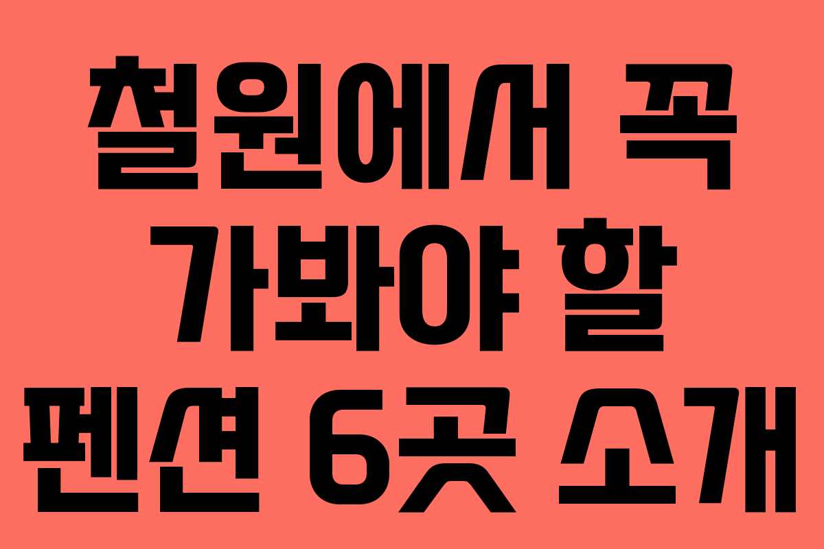 철원은 아름다운 자연과 편안한 휴식 공간이 어우러진 매력적인 여행지로, 가족 및 친구들과 함께 시간을 보내기에 최적의 장소입니다. 이번 포스트에서는 철원에서 추천하는 펜션 6곳을 소개하고, 각 펜션의 특별한 서비스와 주변 관광명소에 대해 알아보겠습니다.