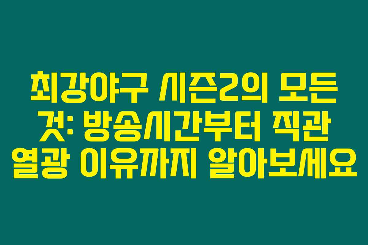 최강야구 시즌2의 모든 것: 방송시간부터 직관 열광 이유까지 알아보세요
