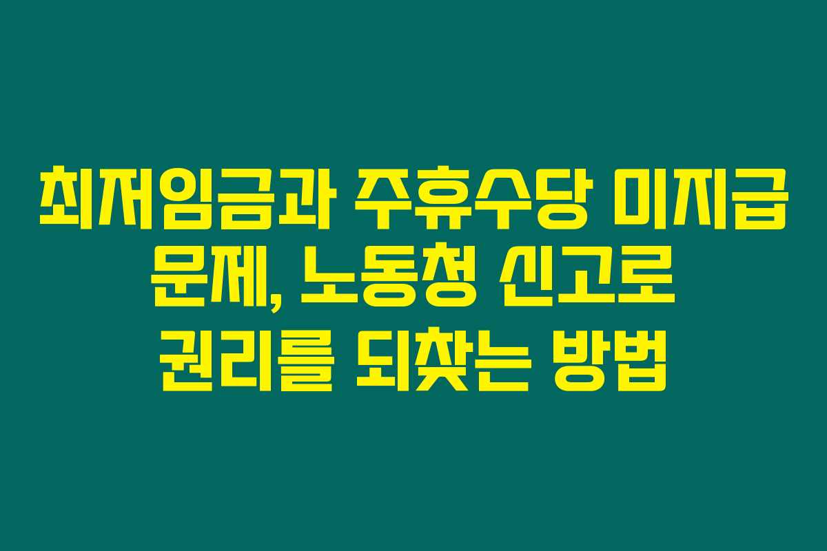 제가 직접 경험해본 결과로는, 최저임금 미지급과 주휴수당 문제는 많은 사람들이 마주하는 어려운 상황입니다. 이 글에서는 이러한 문제를 노동청에 신고하여 해결할 수 있는 방안에 대해 자세히 안내드립니다.