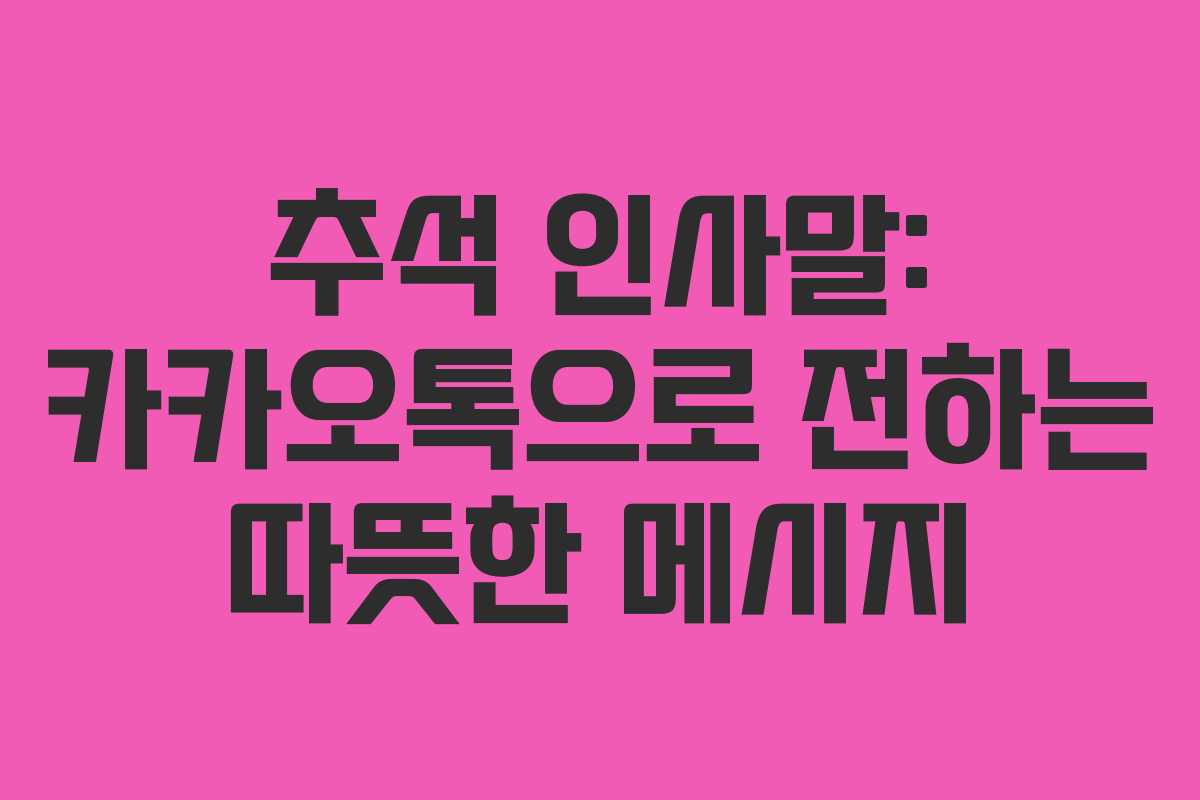 추석은 가족과 친지들이 모여 따뜻한 정을 나누는 특별한 명절입니다. 해외에 있는 분들이나 멀리 떨어진 지인들에게도 카카오톡을 통해 간단한 인사말을 전하는 것이 좋습니다. 이 글에서는 추석 인사말로 사용할 수 있는 문구들을 소개합니다.