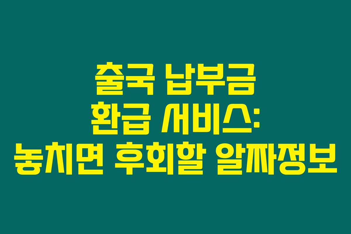 해외여행을 자주 하시는 분들에게 출국 납부금 환급 서비스는 놓쳐서는 안 되는 정보입니다. 이 정보를 통해 소중한 경비를 되돌려 받을 수 있으니, 꼭 체크해보세요! 감사합니다.