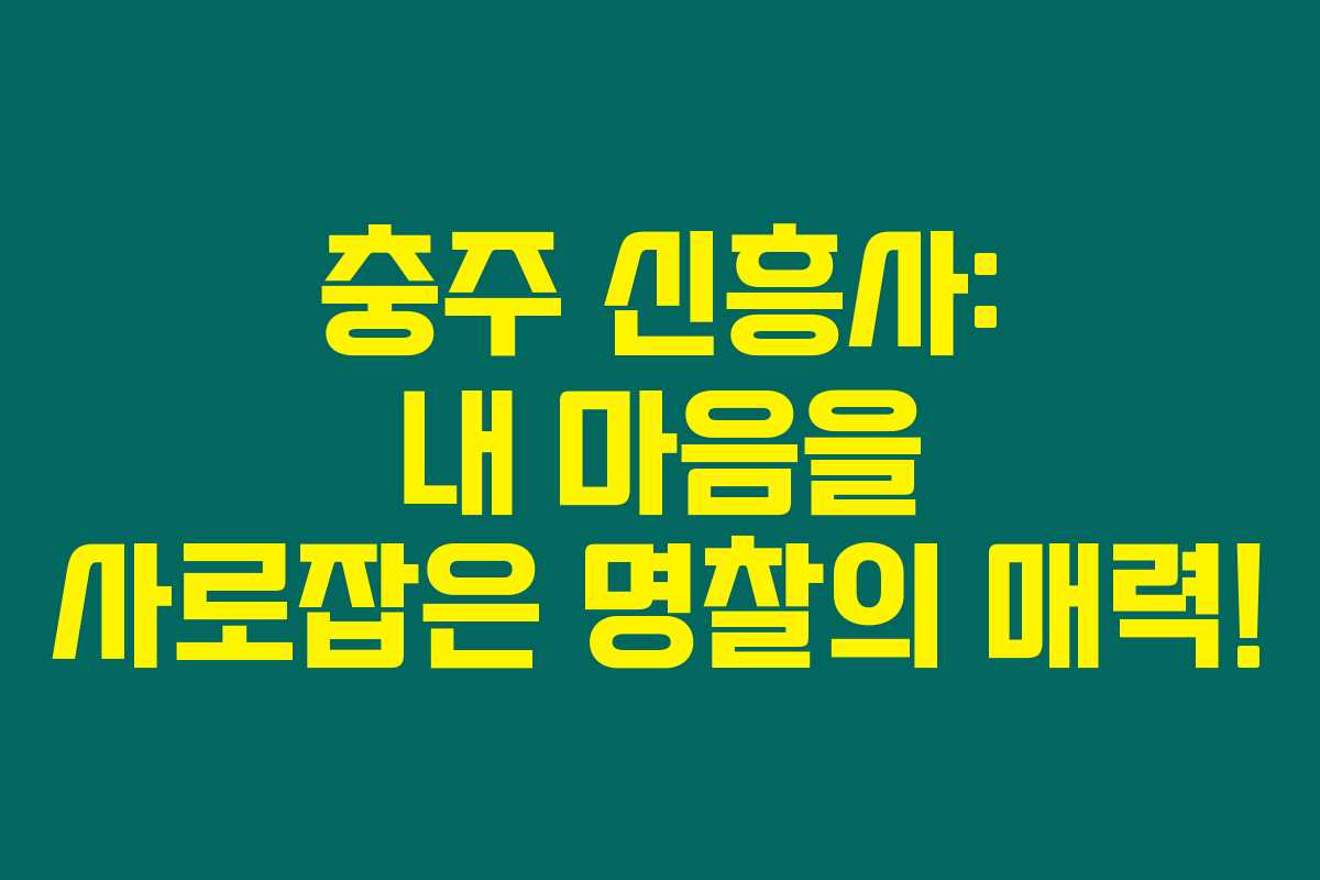 혹시 당신도 바쁜 일상 속에서 한적한 공간을 찾고 있나요? 충주 신흥사는 당신의 마음속 여유를 찾아주고, 평화로운 시간을 선사하는 곳이에요. 아래를 읽어보시면 이곳의 역사와 매력을 알아볼 수 있습니다!