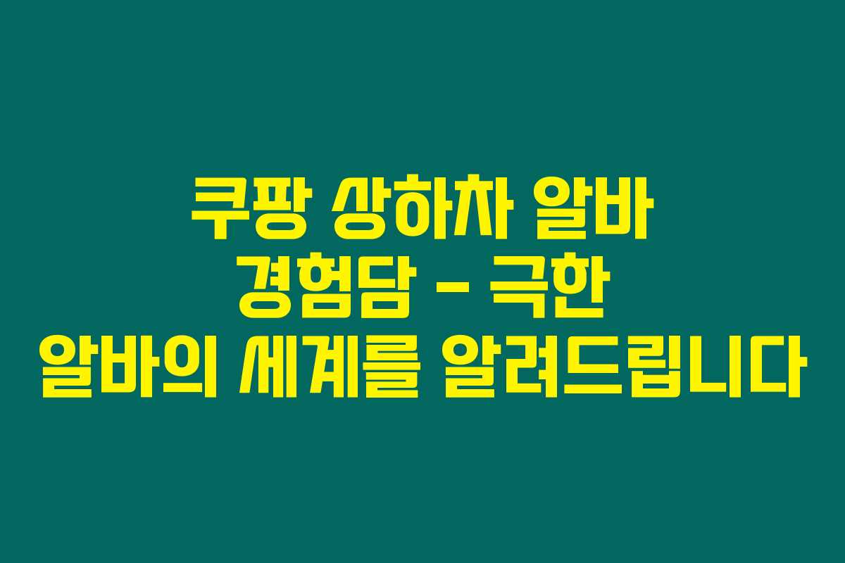 쿠팡 상하차 알바는 어떤 근무 환경인가요?