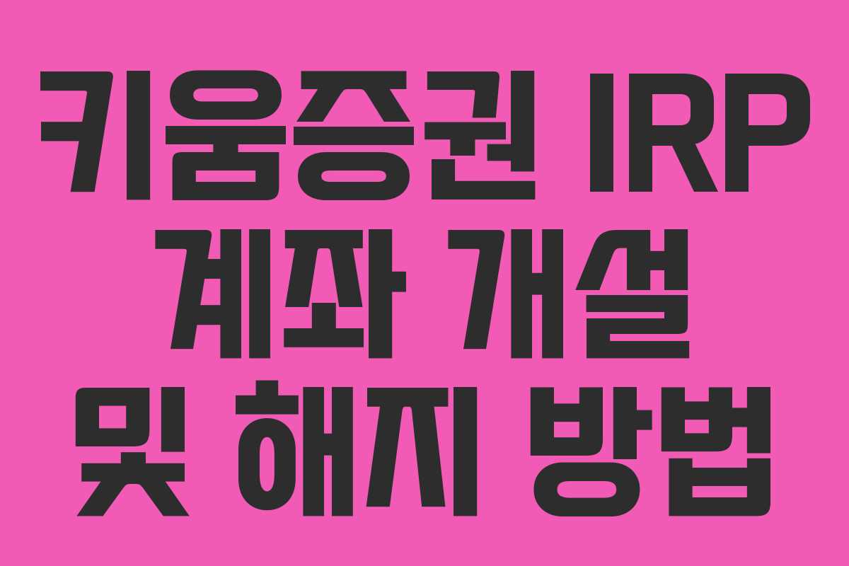 키움증권의 IRP 계좌는 퇴직금을 안전하게 관리하며 추가 세제 혜택을 누릴 수 있는 유용한 금융 상품입니다. 계좌를 개설하고 해지하는 절차를 충분히 숙지하여 현명한 재테크를 이어가시기 바랍니다.