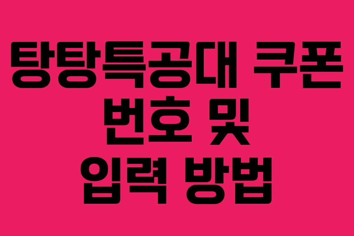 탕탕특공대는 구글 플레이 스토어에서 인기를 끌고 있는 모바일 게임으로, 플레이어들에게 다양한 쿠폰을 제공하여 게임 플레이를 더욱 즐겁게 만들어 줍니다. 이번 글에서는 탕탕특공대의 쿠폰 번호와 입력 방법에 대해 자세히 알아보겠습니다.