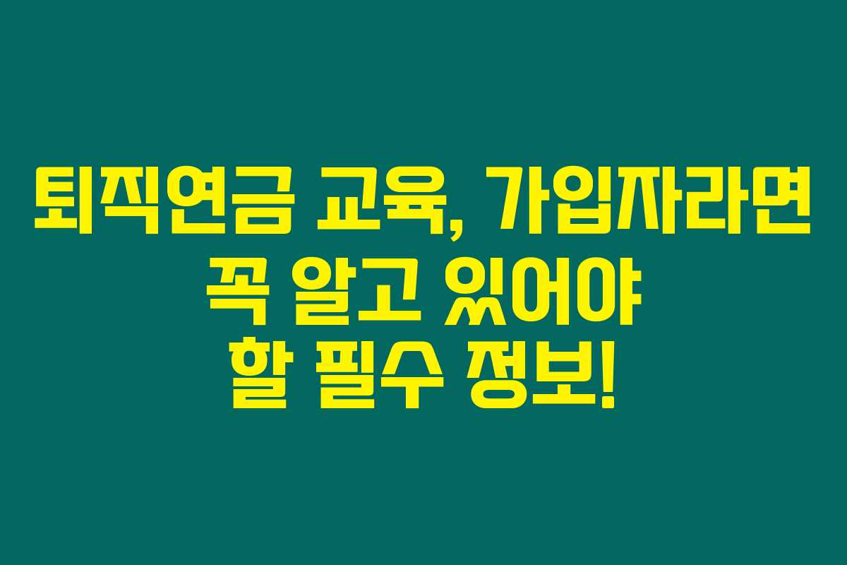 제가 직접 체크해본 바로는, 퇴직연금은 개인의 안정적인 노후 생활을 위한 필수적인 금융 상품이에요. 하지만 많은 사람들이 이 제도의 복잡성과 법적 장치 때문에 제대로 활용하지 못하고 있는 경우가 많으니까요. 퇴직연금 교육은 가입자가 이러한 제도를 잘 이해하고 효과적으로 연금 자산을 운용하기 위해 매우 중요합니다. 아래를 읽어보시면 퇴직연금 교육의 필요성, 교육에서 다루는 주요 내용, 실제 참여 방법 등을 상세히 확인할 수 있을 거예요.