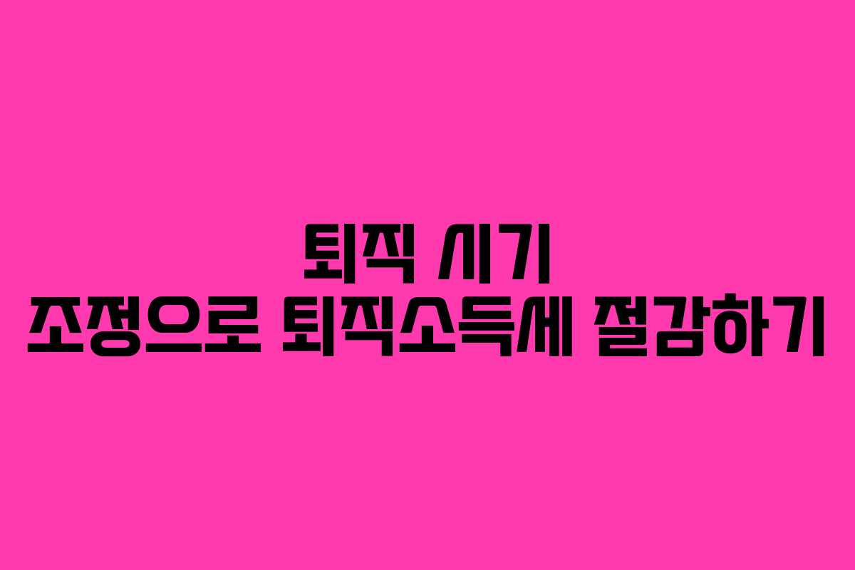 퇴직 시기 조정을 통해 퇴직소득세 부담을 줄이는 전략은 퇴직 후의 재정적 안정을 확보하는 데 매우 중요합니다. 전문가와 상담하고 자신의 상황에 맞는 절세 전략을 마련하여 보다 안정된 퇴직 후 삶을 준비하시기 바랍니다.