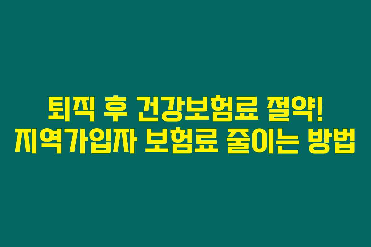 퇴직 이후 건강보험료를 줄일 수 있는 여러 방법이 있습니다. 제가 경험해본 몇 가지를 소개할게요.