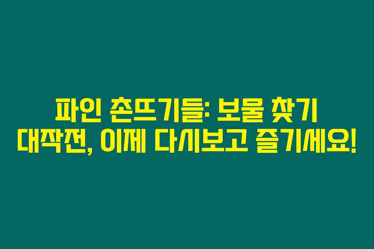 파인 촌뜨기들은 시청자들에게 많은 재미와 감동을 안겨주었지요. 보물 찾기라는 주제를 통해 각 인물들의 깊이를 보여주어 많은 이의 마음을 사로잡았답니다. 놓쳤던 회차가 있다면 꼭 다시 보세요!
