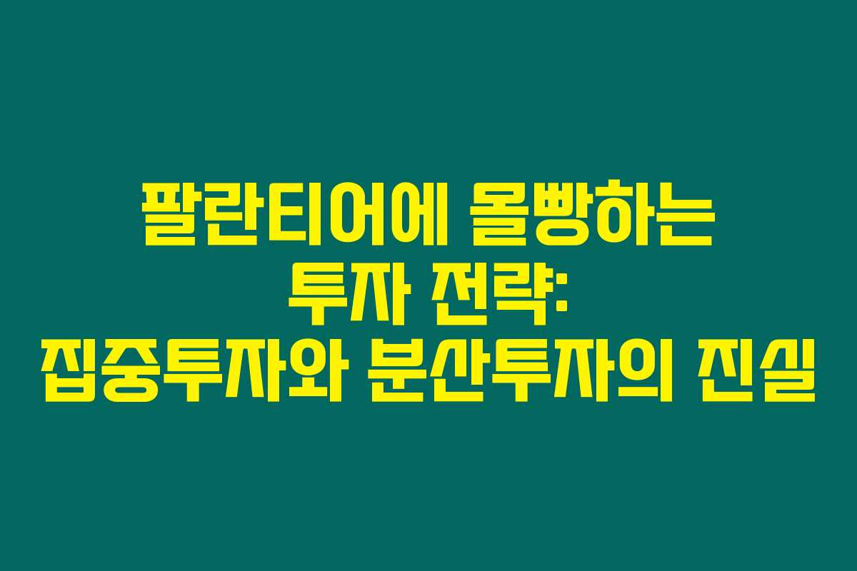 팔란티어에 몰빵하는 투자 전략: 집중투자와 분산투자의 진실