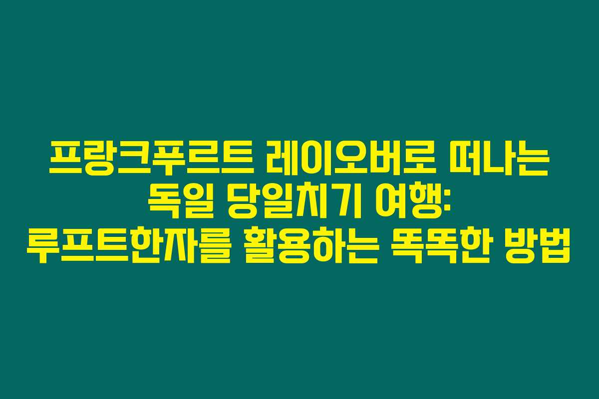 프랑크푸르트 레이오버를 통해 독일을 당일치기로 여행할 수 있는 방법과 그 매력을 한눈에 살펴보셨죠? 여행 예산은 줄이고 다양한 경험은 놓치지 않는 것이 중요해요. 다음 여행은 프랑크푸르트에서 시작해보시는 걸 추천드립니다. 그리고, 잊지 않고 여유롭게 여행 계획하세요!