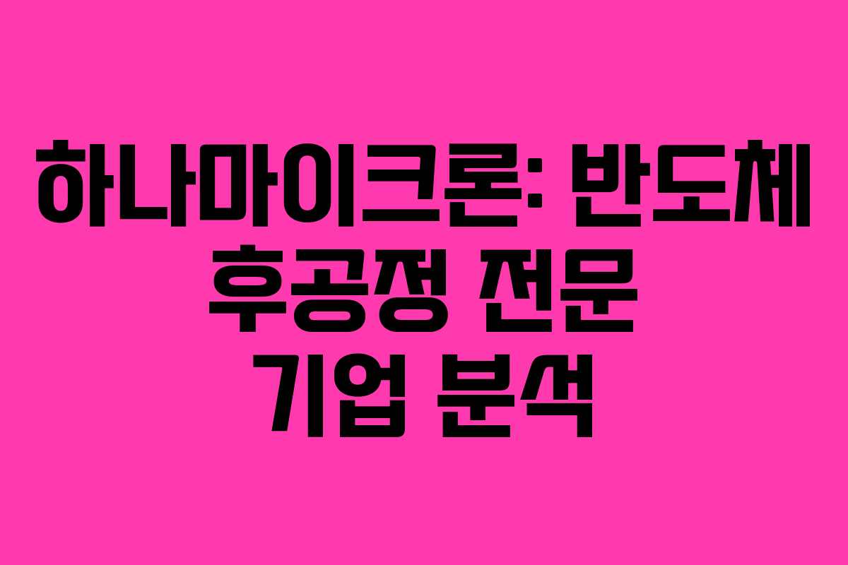 하나마이크론은 코스닥시장에 상장된 반도체 후공정 전문 기업으로, 반도체 제품의 패키징 및 반도체 재료 생산을 주요 사업으로 하고 있습니다. 이 글에서는 하나마이크론의 사업 분석, 반도체 검사장비의 향후 전망, 그리고 실적에 대해 자세히 살펴보겠습니다.
