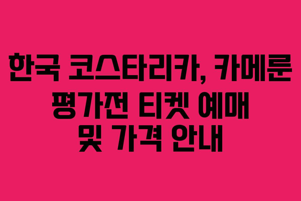 이번 2025-08 기준 한국 축구 대표팀의 평가전인 코스타리카와 카메룬 경기의 티켓 예매 방법과 가격에 대한 정보를 정리해 드립니다. 아래를 읽어보시면 티켓을 손쉽게 구입하는 데 도움이 될 것입니다.