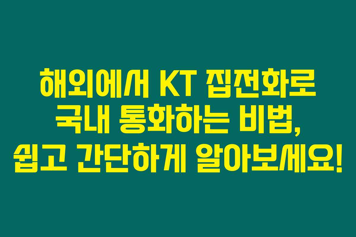 해외에 계신 분들이 통화를 쉽게 하기 위해서는 몇 가지 방법을 알고 있어야 해요. 특히 KT 집전화를 이용해 한국으로 전화를 할 때, 어떻게 해야 할지 막막할 수 있지요. 아래를 읽어보시면 해외에서 국내로 전화할 때 필요한 정보와 절차를 쉽게 이해할 수 있을 거예요.