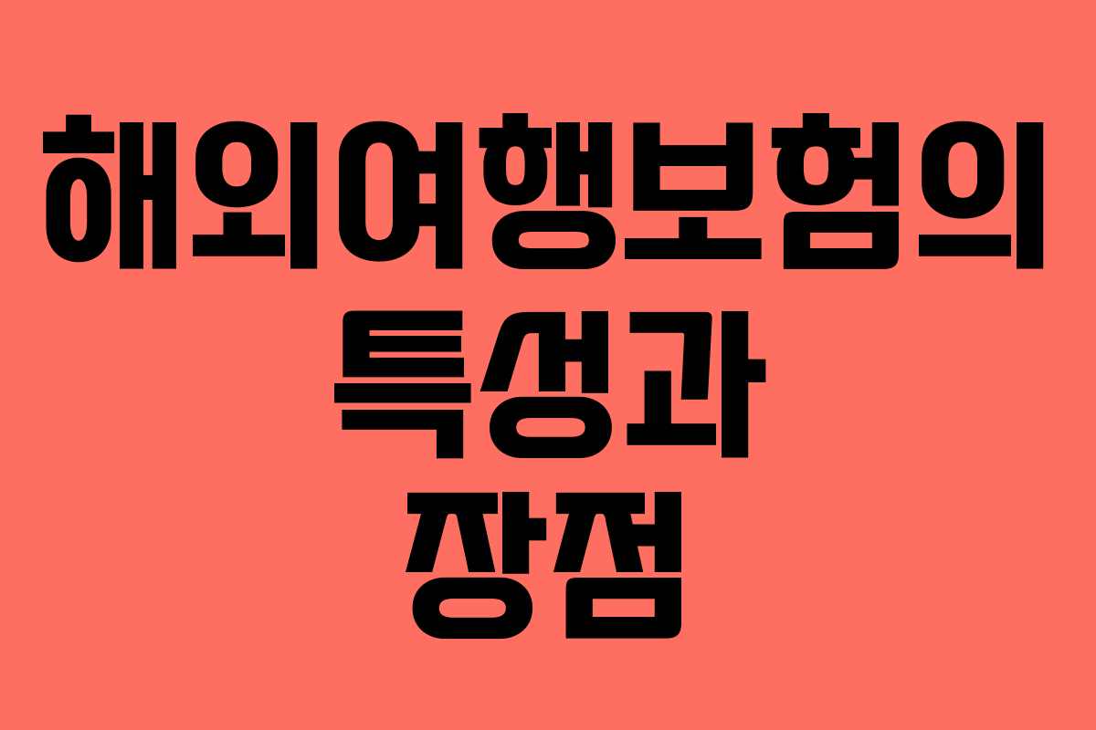해외여행보험은 그 특성상 일반 보험과는 차별화된 장점이 있으며, 여행 중의 안전을 위해 필수적으로 고려해야 하는 요소입니다.