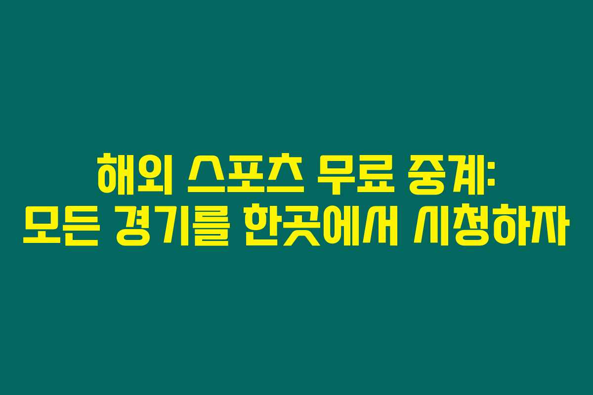 해외 스포츠 무료 중계를 찾고 계신가요? 축구, 야구, 농구, 하키, UFC 등 다양한 종목의 경기를 무료로 시청할 수 있는 방법을 소개합니다. 아래를 읽어보시면 이 기회를 놓치지 않고, 원하는 경기를 핸드폰이나 PC로 간편하게 시청할 수 있는 팁을 알게 될 거예요!