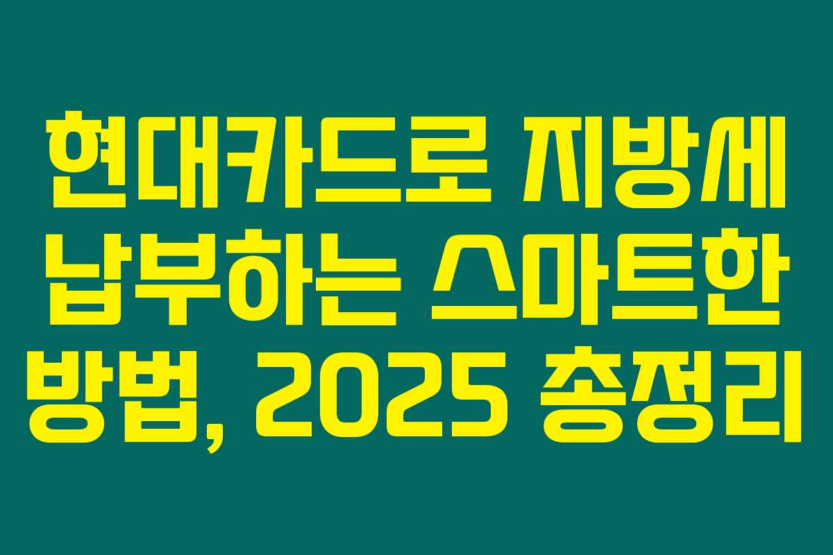 제가 직접 알아본 바로는, 지방세 납부는 현대카드 홈페이지 또는 지정된 웹사이트를 통해 간편하게 진행할 수 있어요. 인터넷을 이용한 납부 방식은 다음과 같습니다: