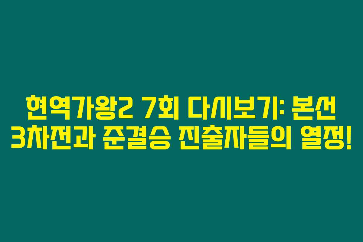 키워드: 현역가왕2, 다시보기, 본선 3차전, 준결승, 대국민 투표, 방출자, 참가자, 무대, 경쟁, 응원, 가수, 방송
