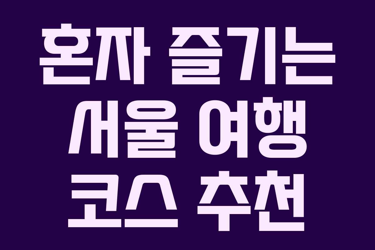 혼자 서울 여행을 계획하고 계신가요? 서울은 혼자서도 충분히 즐길 수 있는 매력적인 장소가 많습니다. 이번 포스트에서는 혼자 놀기에 적합한 서울 여행 코스를 소개하겠습니다.
