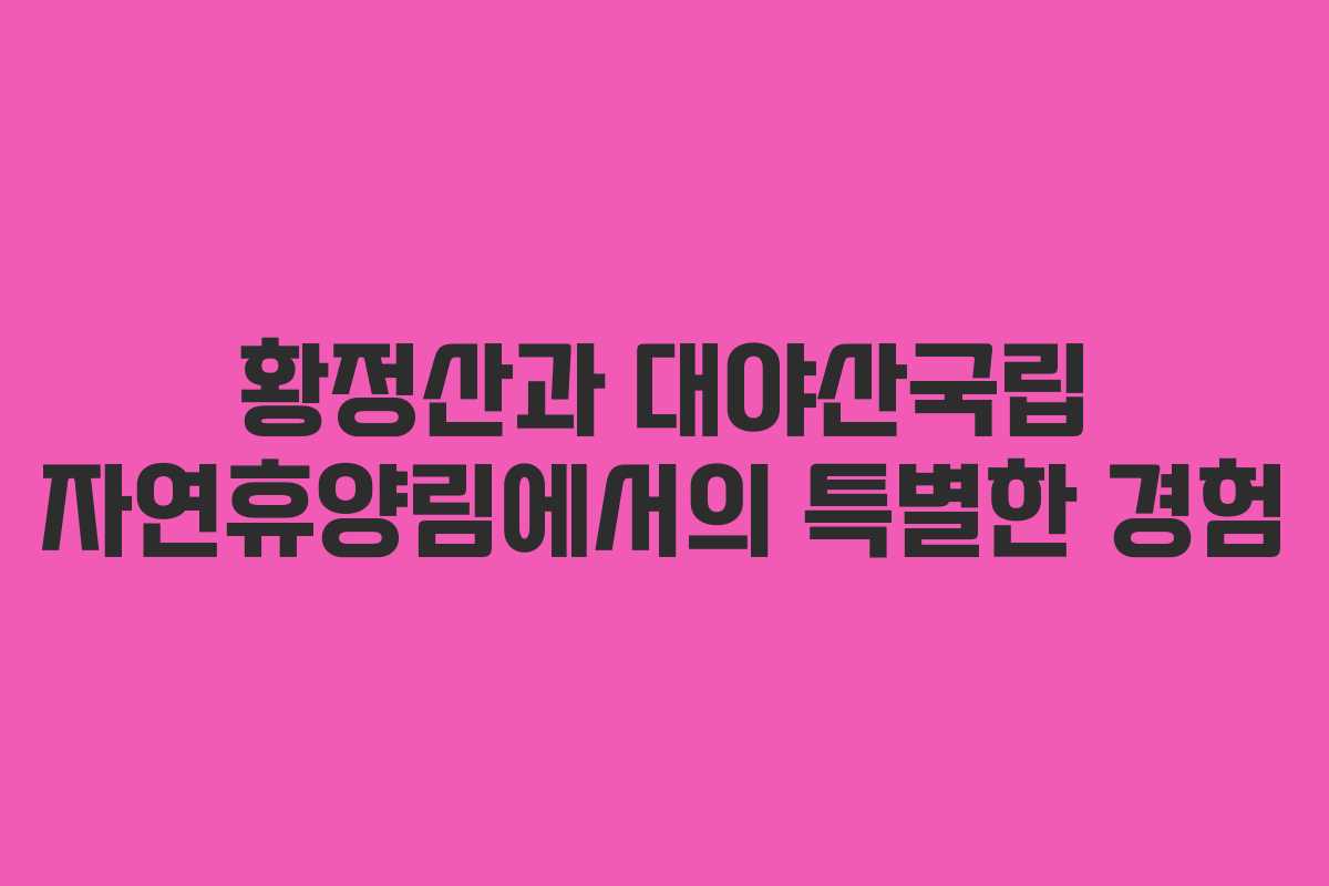 자연 속에서의 특별한 경험을 위해 황정산과 대야산국립 자연휴양림으로 떠나는 여정은 언제나 기대감을 증폭시킨다. 이 블로그 포스팅에서는 2026년 기준으로 이 두 곳에서의 경험을 생생하게 전달하고자 한다. 방문을 고려하는 이들에게 유용한 정보를 제공하기 위해, 각각의 장소에서 느꼈던 점과 함께 유용한 가이드를 소개할 예정이다.