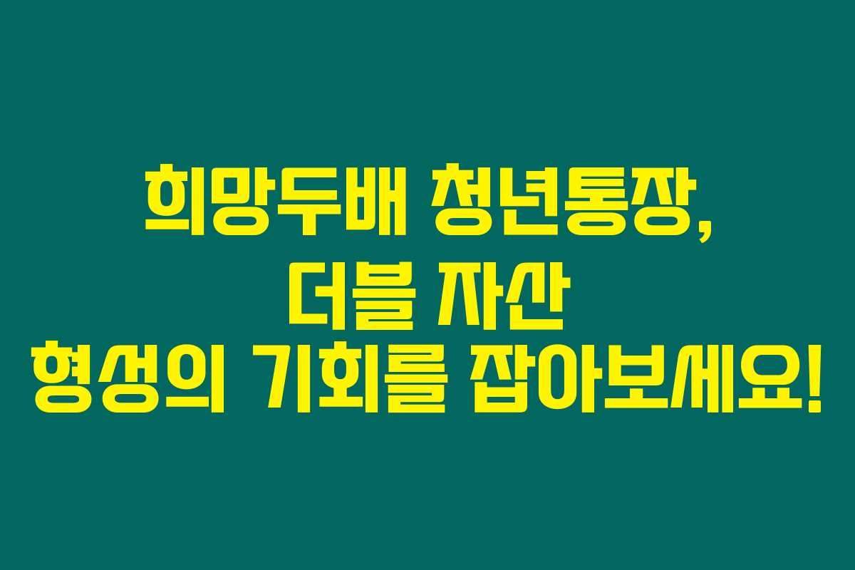 이 정보들을 바탕으로 희망두배 청년통장에 꼭 참여해 보세요. 자산 형성의 기회를 놓치지 마시고, 두 배의 즐거움을 누리시길 바랍니다!