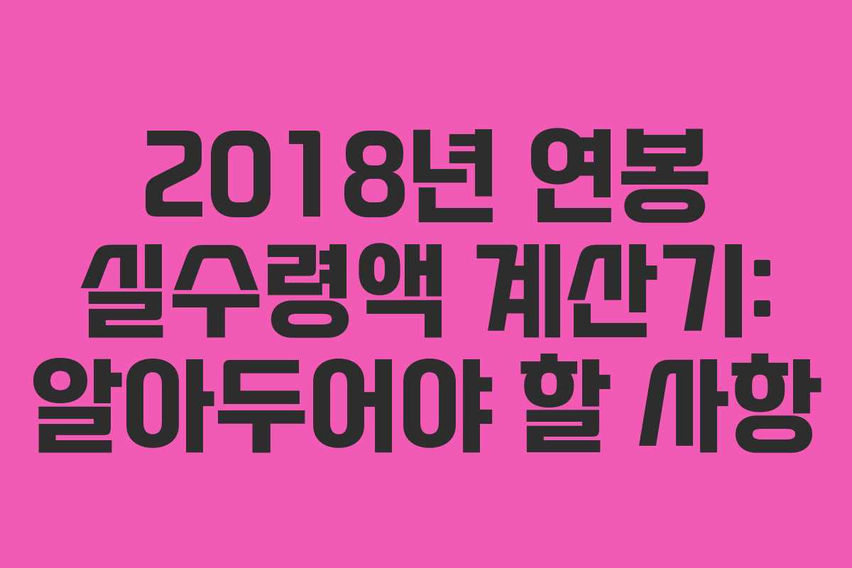 2018년 연봉 실수령액을 정확히 계산하는 것은 직장인에게 매우 중요한 일입니다. 연봉 협상 시 필요한 정보를 제공하기 위해, 이 글에서는 연봉에 따른 실수령액 계산 방법과 주의사항을 안내드립니다.