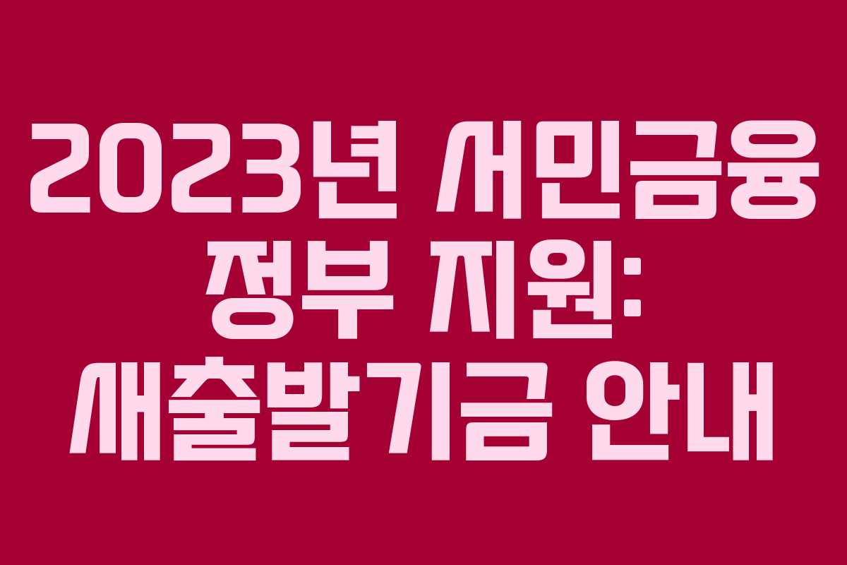 2023년 서민금융 정부 지원: 새출발기금 안내