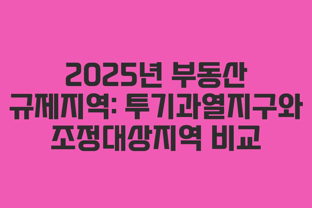 이 글을 통해 2025년 부동산 규제지역에 대한 이해를 높이고, 현명한 투자 및 내 집 마련 전략을 세우는 데 도움이 되기를 바랍니다.