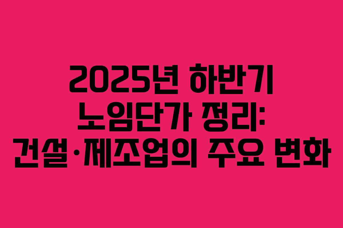 2025년 하반기 노임단가 정리: 건설·제조업의 주요 변화