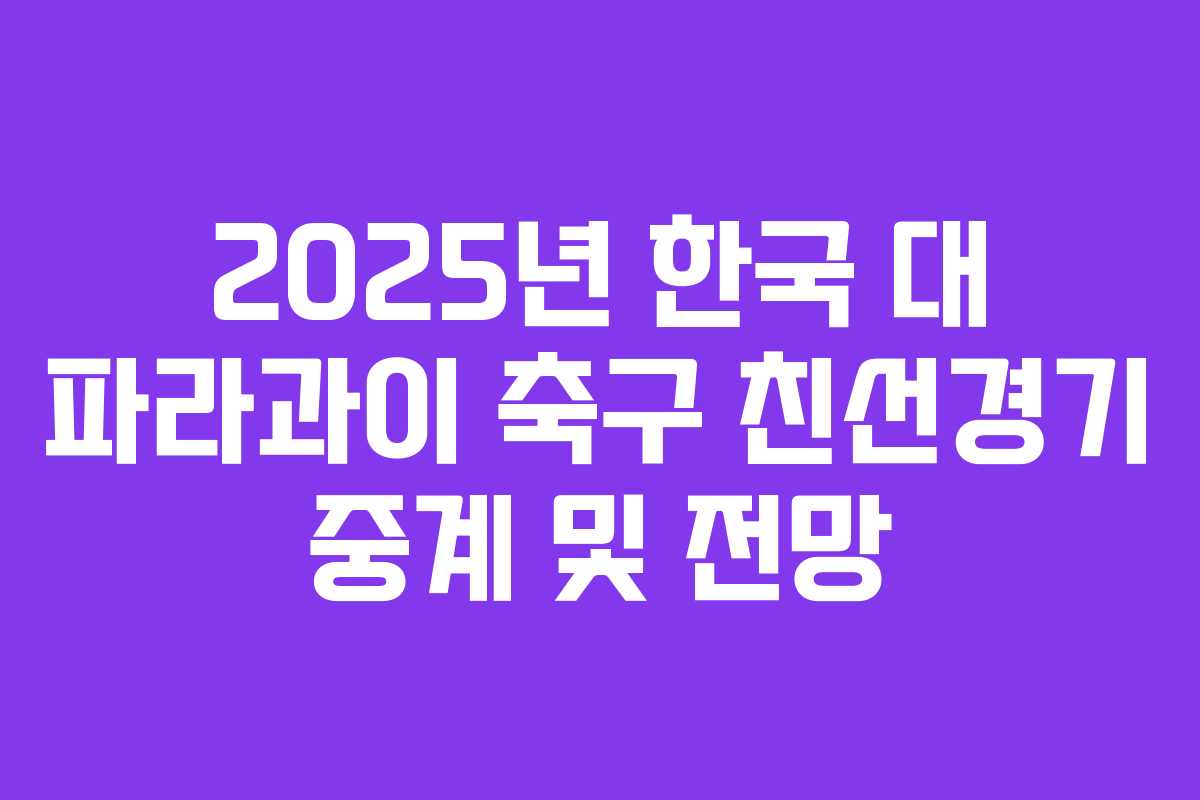 2025년 10월 14일 화요일 오후 8시, 서울월드컵경기장에서 대한민국 축구 국가대표팀과 파라과이 대표팀의 친선 경기가 열립니다. 이 경기는 2026 FIFA 월드컵을 대비한 중요한 평가전으로, 많은 축구 팬들의 관심을 받고 있습니다. 이번 포스팅에서는 경기의 개요, 중계 방송 정보, 그리고 경기 전망 및 관전 포인트를 자세히 안내드리겠습니다.