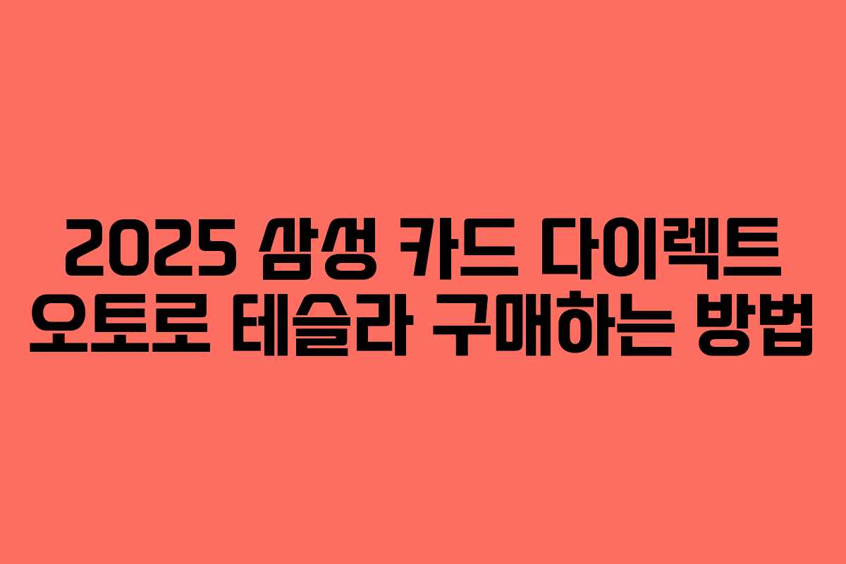 이러한 정보들을 통해 삼성 카드 다이렉트 오토를 활용하여 테슬라 차량을 경제적으로 구매할 수 있는 방법을 확인하시기 바랍니다.
