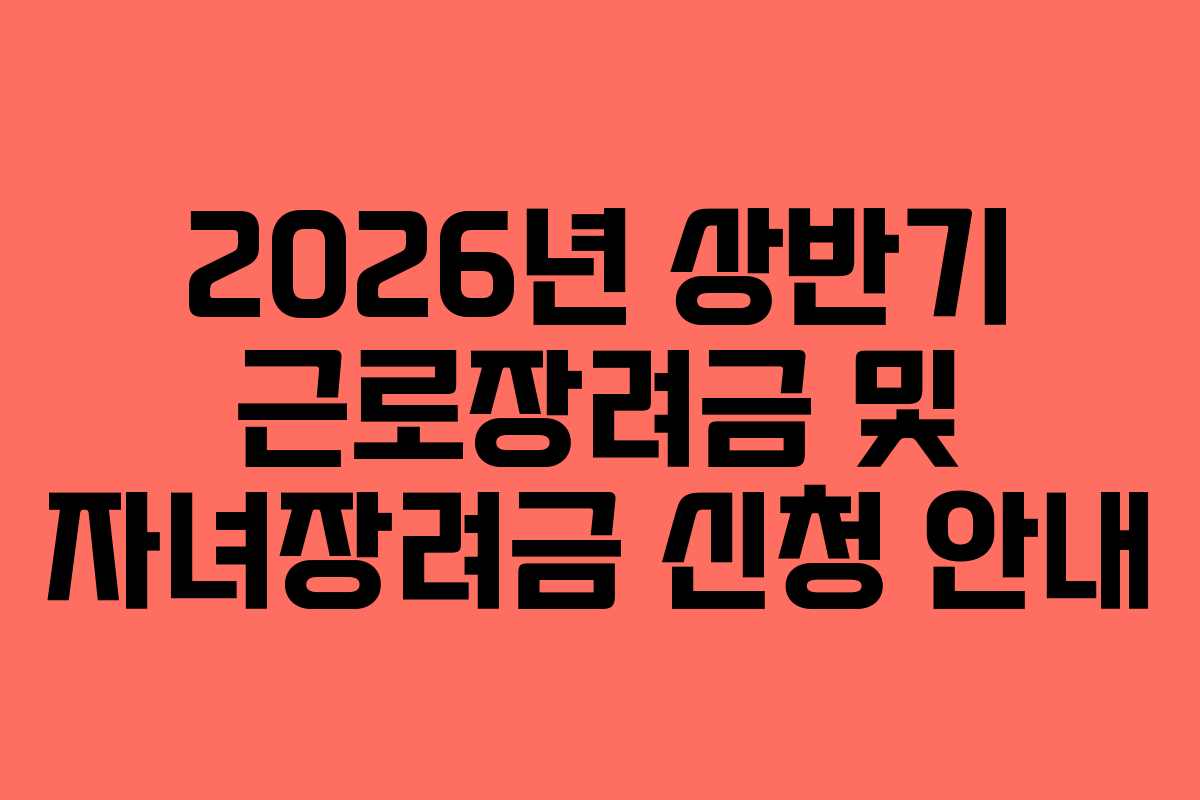 - 2026년 근로장려금 및 자녀장려금의 중요성