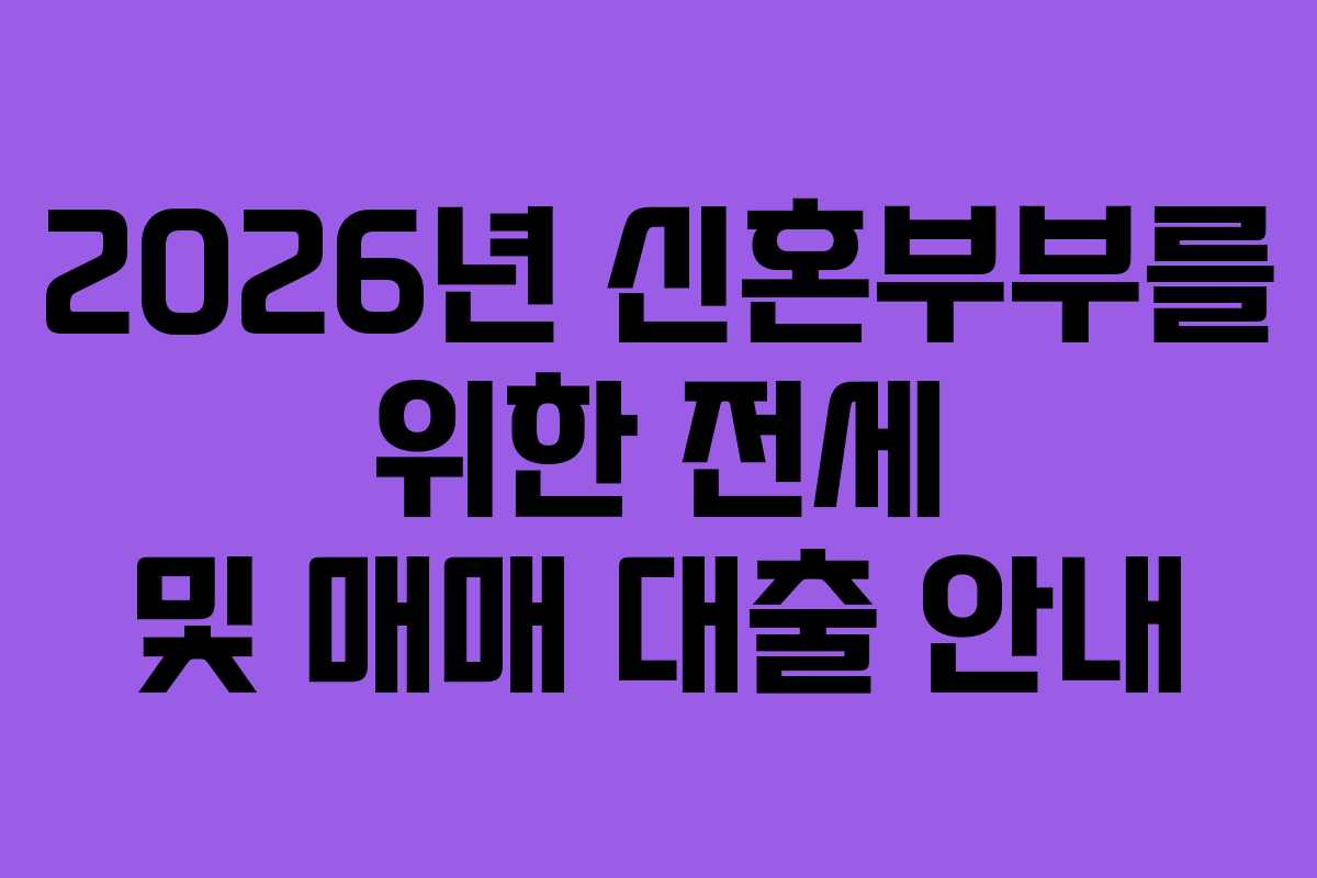 2026년 신혼부부가 고려해야 할 전세 및 매매 대출 상품은 다음과 같습니다. 각 대출 상품의 조건을 잘 파악하고, 본인의 상황에 맞는 선택을 하는 것이 중요합니다.