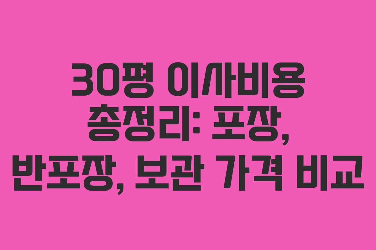이사는 많은 사람들에게 큰 부담이 될 수 있습니다. 특히 30평 아파트 이사를 계획할 때는 이사비용을 미리 파악하는 것이 중요합니다. 이번 글에서는 30평 이사비용에 대한 포장 이사, 반포장 이사, 그리고 보관 이사의 가격을 비교하여 정리해보겠습니다.