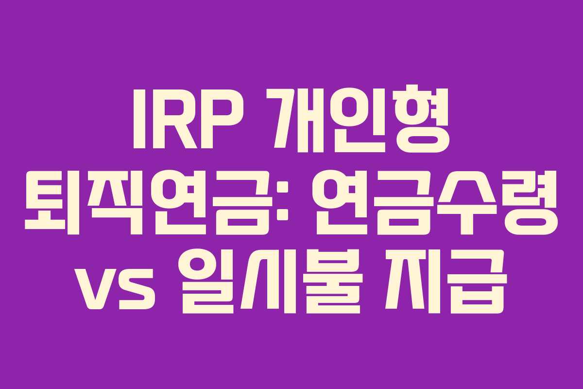 IRP(Individual Retirement Pension) 개인형 퇴직연금은 퇴직금을 적립하여 연금식으로 또는 일시불로 지급받는 방법입니다. 본인의 상황에 따라 적절한 방식으로 퇴직연금을 수령할 수 있으며, 세액공제를 받을 수도 있습니다. 이 글에서는 IRP의 특징과 연금수령 및 일시불 지급의 장단점을 살펴보겠습니다.