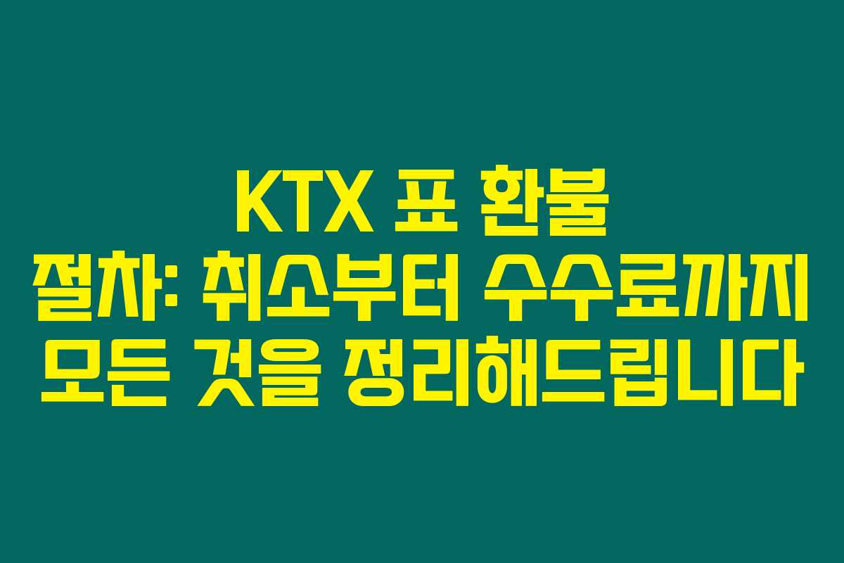 제가 직접 리서치한 바로는, KTX를 자주 이용하는 분들에게 가장 중요한 부분 중 하나가 바로 KTX 표 환불 절차와 취소 수수료입니다. 예기치 않게 여행 계획이 변경될 때, 이러한 정보를 아는 것이 많큼 중요한 일이 없지요. 아래를 읽어보시면 KTX 표 환불 절차와 취소 시 필요한 수수료에 대해 자세히 알 수 있습니다.