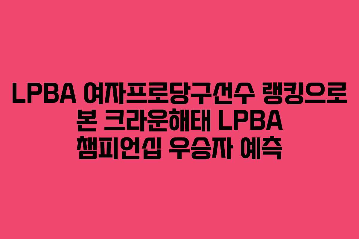 2021-22 시즌 LPBA 여자프로당구선수 랭킹을 기반으로 크라운해태 LPBA 챔피언십의 우승자를 예측해보겠습니다. 이 대회는 12월 7일부터 14일까지 경기도 고양시에서 열리며, 많은 팬들이 기대하고 있습니다.