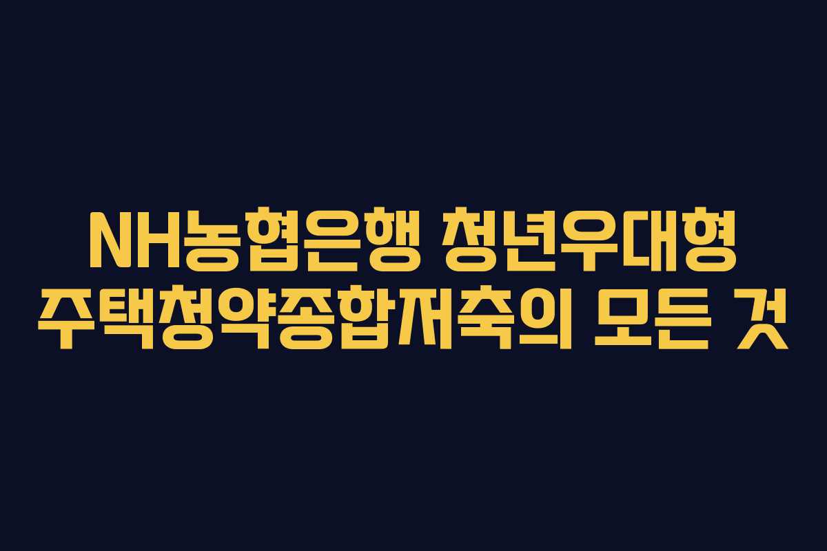 주택 청약은 많은 청년들에게 내 집 마련의 기회를 제공합니다. 특히, NH농협은행의 청년우대형 주택청약종합저축은 청년들에게 더욱 유리한 조건을 제공합니다. 이번 글에서는 청년우대형 주택청약종합저축의 특징과 가입 자격, 장점 등을 자세히 알아보겠습니다.