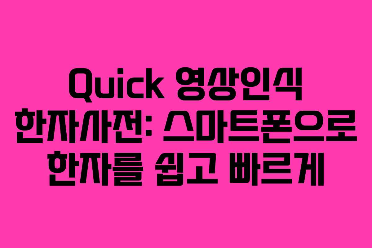 Quick 영상인식 한자사전은 안드로이드 기반의 무료 및 유료 애플리케이션으로, 사용자가 스마트폰 카메라를 통해 한자를 인식할 수 있도록 설계되었습니다. 이 앱은 특히 한자를 자주 사용하는 환경에서 유용하게 사용될 수 있습니다.